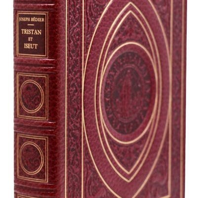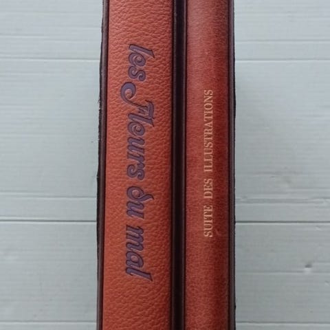 Plein sorg Bordeaux, ryg med 2 nerver, forgyldt guld, første tallerken prydet med en gylden sammensætning, gylden hoved, for- og bagbeklædning af moiré silke i hindbærfarve, kantet etui (forlagsbind).