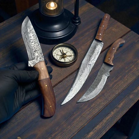 I popular efterspørgsel vender vi tilbage: Genlanserer vores eksklusive mønstervridede stålknive – håndlavet i USA! Kære værdsatte kunder, Vi er begejstrede for at bringe disse imponerende mønstervridede stålknive tilbage på grund af overvældende forespørgsler fra vores elskede fællesskab! Specielt udformet til dem, der værdsætter antik æstetik, vintagesjæl og autentisk brugt/slidt karakter—disse knive har smukke vridede og lagdelte mønstre, der vækker historisk håndværk. Lavet lige her i USA blander hver kniv traditionelle smedeteknikker med højtydende kanter (ved brug af premium-stål som Shirogami-inspirerede høj-kulstofkerner til enestående skarphed og holdbarhed, typisk hærdet til 52–58 HRC). Perfekt for samlere, køkkenentusiaster der værdsætter arveagtige stykker, eller udendørs eventyrere der søger unikke fortællende værktøjer. Det