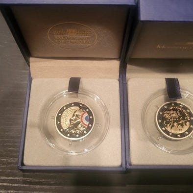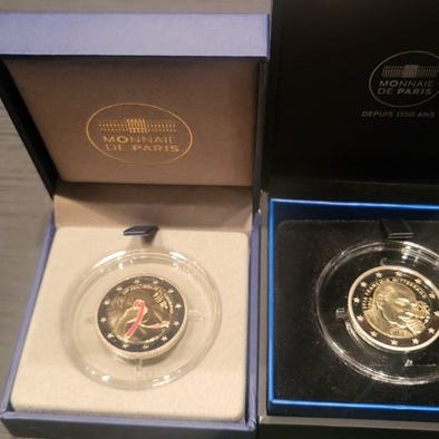 Meget sjældent Belle Épreuve-sæt 2 euro 2022/2023, oplag 2.500 eksemplarer. kun! Indeholder de 5 commemorative 2-euro mønter fra 2022/3 med særlige prægemærker, herunder den meget sjældne 2€ ERASMUS Belle Épreuve, som kun findes i denne æske!