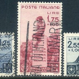 Oprindelse Italia Regno; Bimillenario Oraziano, 3 høje værdier certificeret; Sassone 403/405; fra 1936; tilstand Annullato; certifikat Cilio. Klik på den blå "gå til varen" knap, for at købe eller byde på denne vare. Den samlede pris vil blive vist inden du afgiver dit bud.