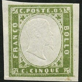Geografisk oprindelse: Italiensk stat, Sardinien; Titel: Vittorio Emanuele II, 20 centesimi azzurro non emesso; Tilstand: Mint uden linguella med fulde margener og meget frisk; Certificeret. Klik på den blå "gå til varen" knap, for at købe eller byde på denne vare. Den samlede pris vil blive vist inden du afgiver dit bud.