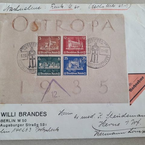 Fra Deutsches Reich, IPOSTA Block 1 på brev, brugt, 1930. Klik på den blå "gå til varen" knap, for at købe eller byde på denne vare. Den samlede pris vil blive vist inden du afgiver dit bud.