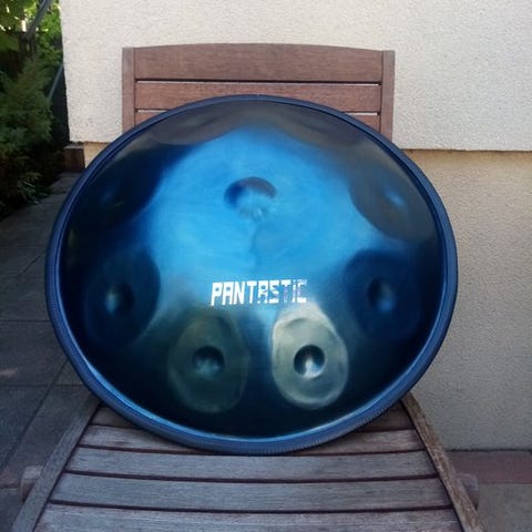Den giver meget god lyd, der er ingen problemer med dens krop; den har en titanium-krop. Testet af en musiker og den producerer toner korrekt. Den er i meget god stand. Der er tegn på tidligere brug på bagsiden og forsiden. Der er også et par prikker på forsiden og bagsiden af malingen. Se venligst billederne. Håndpanet er i brugt tilstand, dog har den en ren og behagelig lyd. Det vil blive sendt med sin originale taske. Det er en taske, der kan bæres i hånden eller på ryggen. Afsendelsen vil ske i en træ eksportkasse. Produktet blev taget under studiobelysning, venligst bemærk, at farverne kan vise sig anderledes end i billedet