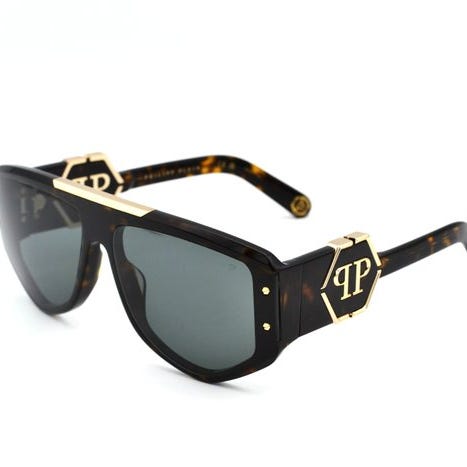 Modellen Philipp Plein Plein Badge SPP107 er en dristig erklæring om moderne stil. Disse unisex solbriller skiller sig ud med deres sofistikerede og iøjnefaldende