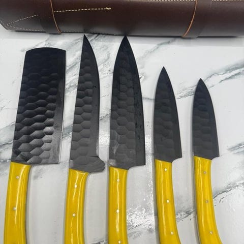 Bring håndværk og ydeevne til dit køkken med dette håndlavede kokke værktøjssæt i Damascus-stål. Hvert stykke er individuelt smedet i hånden, med imponerende mønstre i Damascus-stål og ergonomiske træhåndtag, der kombinerer skønhed, balance og holdbarhed.