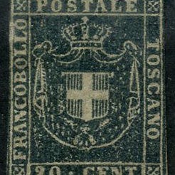 Fra 1855, Aquila estense, 5 centesimos olivengrøn med brede kanter og intakt gummi, Antichi Stati italiani – Modena, Sassone nr. 8; mint uden linguella. Klik på den blå "gå til varen" knap, for at købe eller byde på denne vare. Den samlede pris vil blive vist inden du afgiver dit bud.