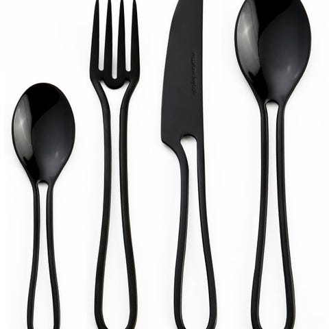 Leder du efter et komplet sæt OUTLINE bestik til at dække bord som ingen andre? Nu kan du få det med dette 28-delte sæt Glossy Black. Fire dele ud af otte forskellige typer: kniv og fiskekniv, gaffel, ske, forrets ske og kage-/dessertbestik i ét sæt. På den måde går du ikke glip af noget, og du vil gøre hver middag med gæster til en særlig oplevelse.