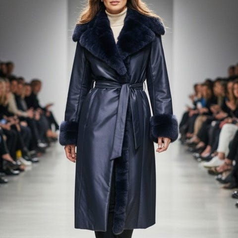 Modellen skiller sig ud med det tilhørende bælte, der matcher den fornemme rævepels og gør plagget unikt i sin slags.