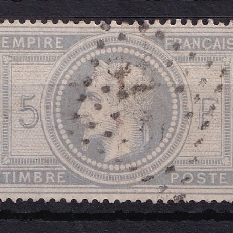 Frankrig 1869 - Napoléon III Lauré, 5 fr. violet-gris - Yvert 33