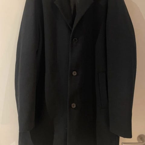 Jack & Jones frakke til herre i uld, størrelse XL. Frakken er grå og har klassisk design med knaplukning foran. Ydermaterialet er uld, og den har glat foer indvendigt for øget komfort. Velegnet som yderjakke i køligere vejr.