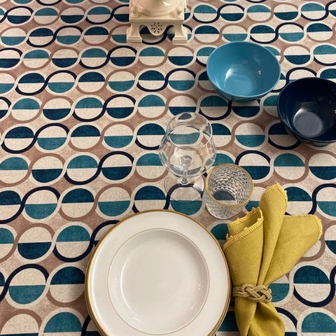 Smuk og eksklusiv dug i bomuldsblanding med canapone-effekt fra San Leucio i blomstermønsterstil i beige som grundfarve, dekoreret med camelliaer og vilde blomster, med en fantastisk tredimensionel effekt af yderste finhed.
