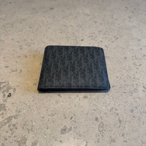 Christian Dior pung i læder til unisex. Pungen er udført i sort præget læder kombineret med Dior-monogram på ydersiden. Indvendigt har den flere kortlommer og rum til opbevaring af kort og mindre sedler. Egnet som kompakt hverdagspung til både mænd og kvinder.