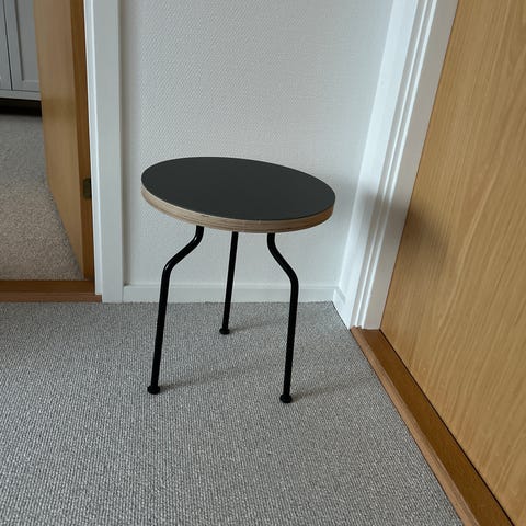 Halvrundt bord med tilhørende skammel.