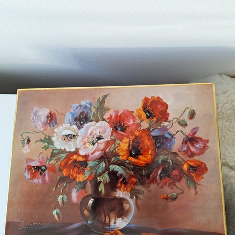 Fin gammel metal æske. L 17 - B 11,5 - H 5 cm med smuk motiv. Sender gerne med + porto