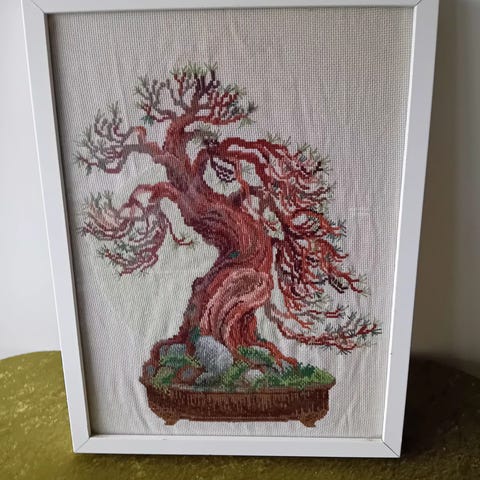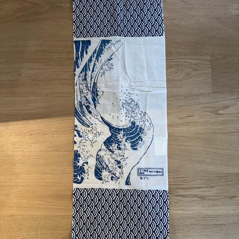 Flot broderi i japansk stil undervandsmotiv. Fed diagonal ramme.