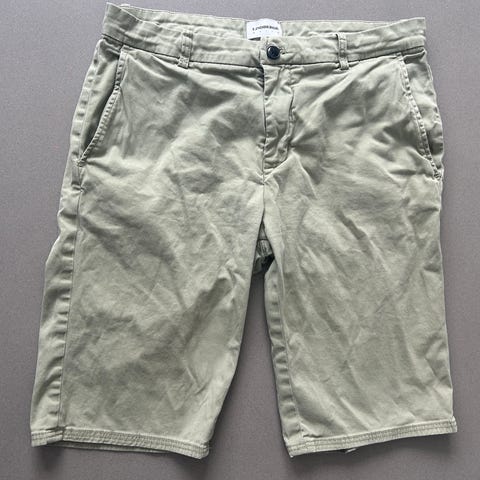 Shortsene er fremstillet i bomuld og er grønne. De har sidelommer foran og baglommer med knaplukning. Klassisk talje med bæltestropper og lukning med knap og lynlås. Egnede til hverdagsbrug i varme perioder.