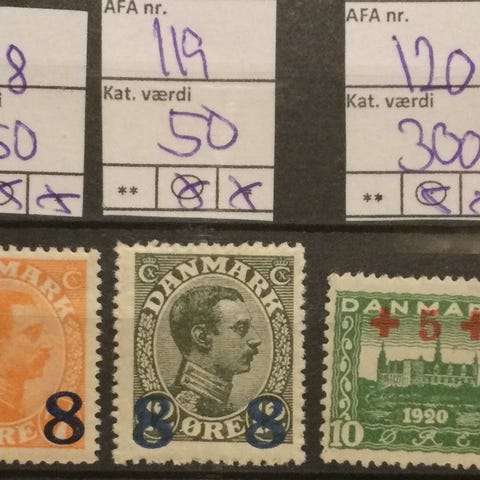 8) Danmark – Postfrisk (100% postfriske uden hængsler eller hængselrester) – Luftpost - AFA 144 + 145 + 146