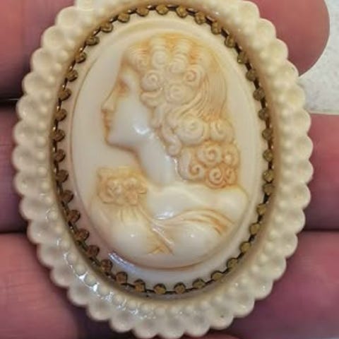 Sjælden antik broche. Egyptisk revival broche. Forgyldt med emalje.