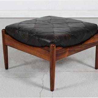 Dansk snedkermester, skammel i palisander med sort læder polstring. ( Tilskrevet Tove & Edvard Kindt Larsen. )