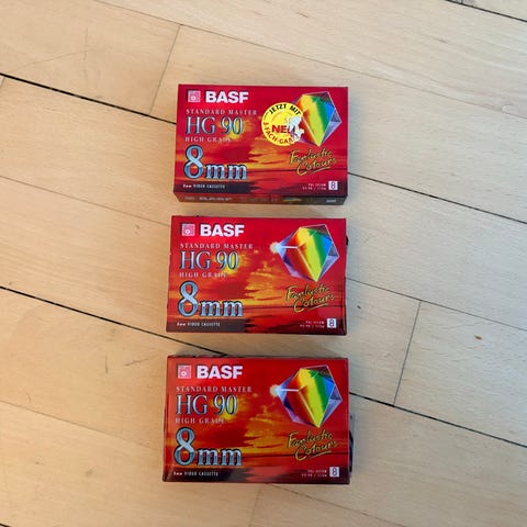 BASF Hi8, Hi8 bånd, Hi8 tape, MP 90, Metal Particle, 90 min videobånd, 8mm Hi8, analog video, camcorder cassette, retro video, vintage kamera, BASF Fantastic Colours