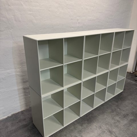 Hvidt Montana modul, stilrent og klassisk udtryk – hylder kan justeres og tilpasses efter behov.