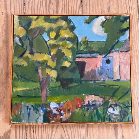 Oliemaleri med lærredsmål 17,5 x 35 cm, fremstår varmere i farverne end på foto, er i perfekt stand