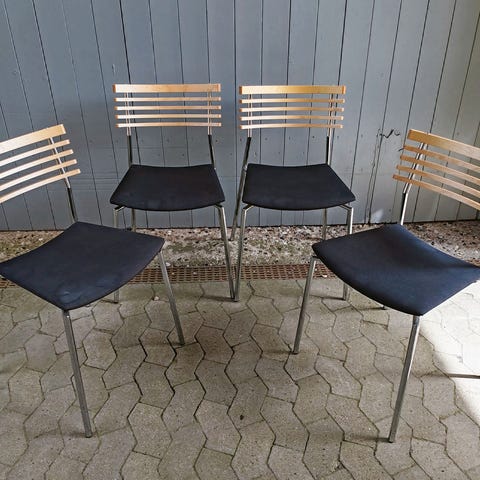 Flotte, robuste Randers Radius Rail stabelstole - polstret med slidstærkt blånistret møbelstof