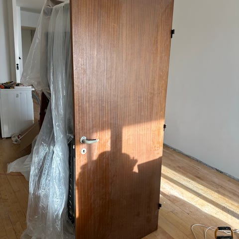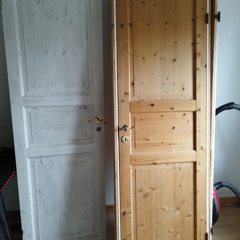 Massiv indvendig dør i fyrretræ i naturfarve. Døren har fyldninger i lodret ramme/karm og er velegnet som indvendig dør i bolig, fx værelse, gang eller kontor. Leveres med monteret greb og hængsler som vist på billederne. Mål og hængning kan kontrolleres ved opmåling på stedet.