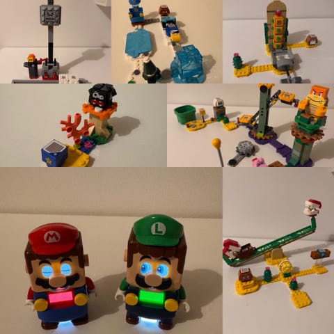LEGO Super Mario byggesæt med forskellige figurer og banedele. Sættet indeholder flere små opbygninger, interaktive elementer med scanningsfelter samt forskellige farvede plader og klodser til at udvide eller tilpasse en Super Mario bane. Egnet som tilbehør eller udvidelse til andre LEGO Super Mario startsæt og udvidelsessæt.