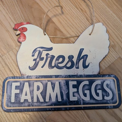 Træ skilt, ubrugt. Høns