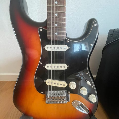 Standen er virkelig god uden nævneværdige ridser i lakken. Slagpladen har dog lidt spor efter plekter under strengene men dette er kosmetisk.