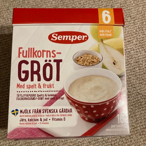 Uåbnede grød, 4 lækre med frugt og to med havre og spelt, perfekt til baby fra 6 måneder
