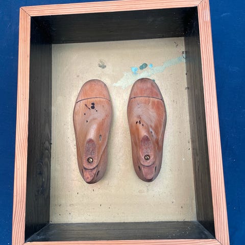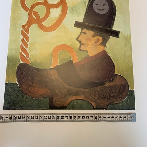Plakat af Højlandsko i en teak magnet ramme med lædersnor fra prik og streg.