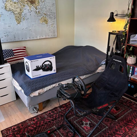 Med håndbremse og gearvælger, komplet til de fleste spil.