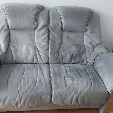 Rigtigt god siddekomfort. Høj ryg. Har ikke forsøgt afrensning af pletter. Skal afhentes på gadeplan i Albertslund.