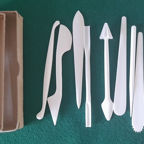 Sæt med ler- og skulpturværktøj, brugt men i fin stand
