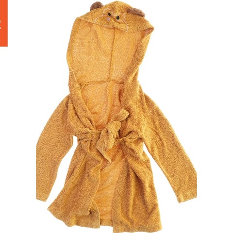 Badekåbe til børn i lyserød farve med guldfarvede hjertemønstre. Kåben har to forlommer og et bindebælte. Den er lavet af blødt materiale for komfort.
