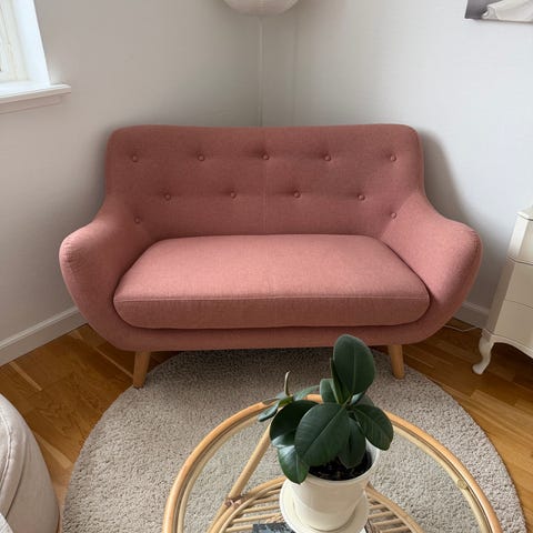 Fin lille 2 Pers sofa fra Sofacompany i grøn velour. Fra røg- og dyrefrit hjem.