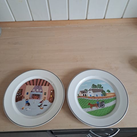 2 stk. dyb tallerken 21cm, motiv Noah's ark og Fireplace