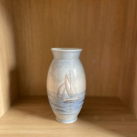 Sælger denne virkelig smukke og helt intakte Bing & Grøndahl (B&G) 948- 5507 marine vase med målene 32 x 28 cm med motiver af et sejlskib på åbent hav - forskelligt motiv på hver side, som vil kunne ses af billederne.