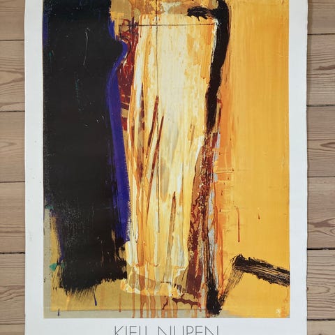 Denne plakat viser en kunstnerisk illustration med farverne orange, brun og grå. Øverst finder vi teksten 'Nitter-Drengene' af Kaj Nissen. Plakaten blev udstillet på Dueslaget, Stengade 51, Helsingør med en premiere der fandt sted 18. januar 1986. Den måler 98x68 cm i størrelse. Plakaten er rullet sammen, som ses på det andet billede.