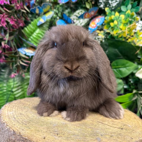 Vant til børn og hund. Han har været vant til hænder altid, men er ikke en skøde kanin.