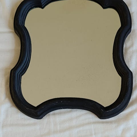 Antik spejl: Blyindfattet spejl. Rammehøjde 65 cm og bredde 43 cm (største bredde). 500 kr.