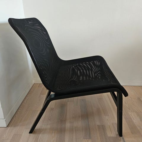 Stolerække fra fly monteret på bøjle så den ikke kan vælte. Sæderne kan lænes tilbage