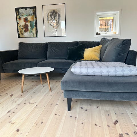 Det er virkelig en god kvalitetssofa som vi har været meget glade for, og kun går af med, da vi er ved at omrokere i stuen, hvor den ikke kommer til at passe ind.
