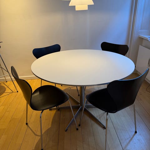 Arne Jacobsens rundt bord med 4 myrestole/ sjældent
