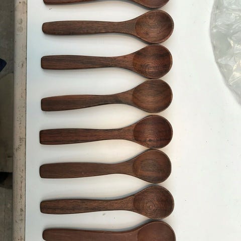 Sæt af 6 skeer med Teak træhåndtag og Messing beslag (str. 15 cm. 6 styk)