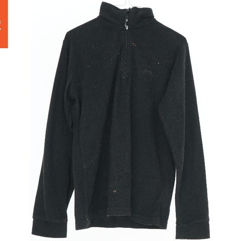 Rød fleece trøje med lange ærmer og en høj hals. Trøjen har en lynlås ved halsudskæringen og logoet er synligt foran. Det er lavet af Trespass og har sorte detaljer ved enderne af ærmerne.