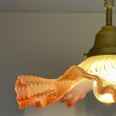 Den med rød kant, højde med ophæng ca 17 cm, ø for neden 15 cm