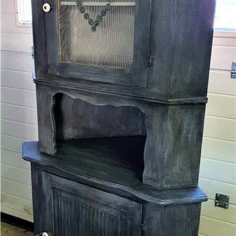 Virkeligt smukt vitrine hjørneskab. Upcycled i fransk romantisk stil. Du finder ikke et magen til🤩Perfekt til sommerhuset eller landstedet.